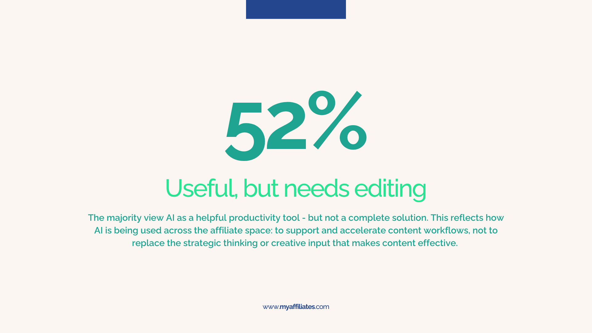 The majority view AI as a helpful productivity tool – but not a complete solution. This reflects how AI is being used across the affiliate space: to support and accelerate content workflows, not to replace the strategic thinking or creative input that makes content effective.