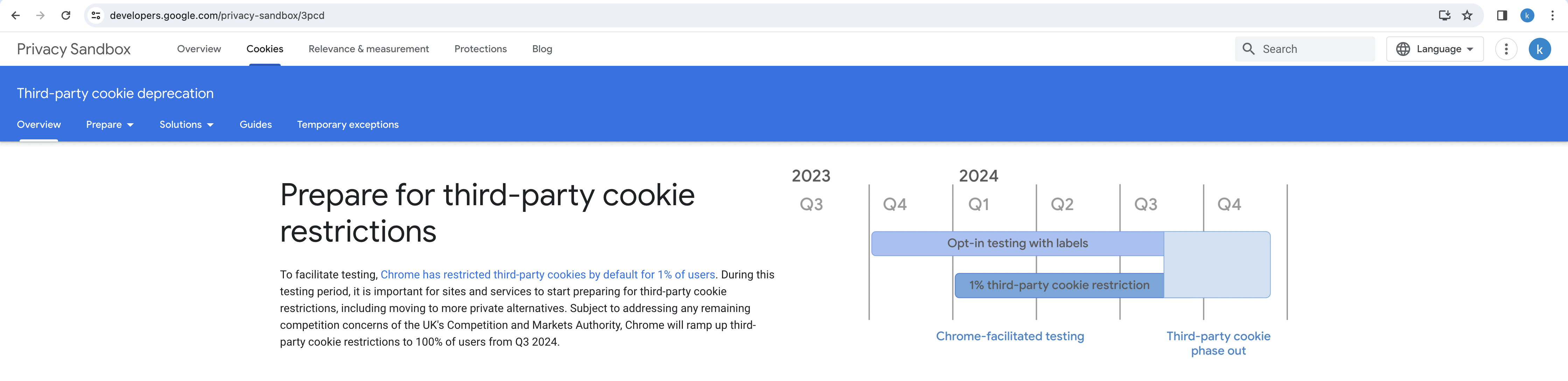 Many people think that Google will impose the Interwebs to be completely cookie-less. Let us first kill the myth of a cookie-less world. Below is a screenshot of what Google is actually saying – Prepare for third-party cookie restrictions:
